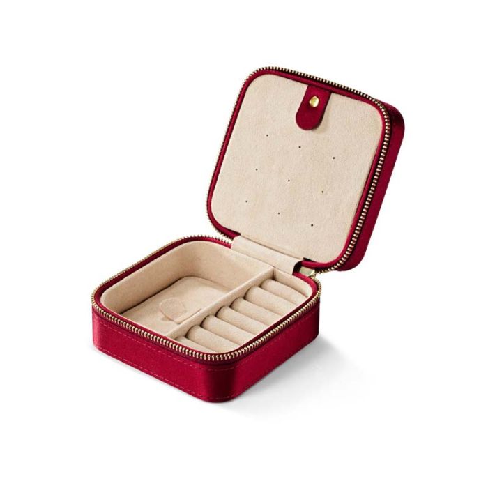 OLE LYNGGAARD COPENHAGEN rejse smykkeskrin, bordeux rød silke