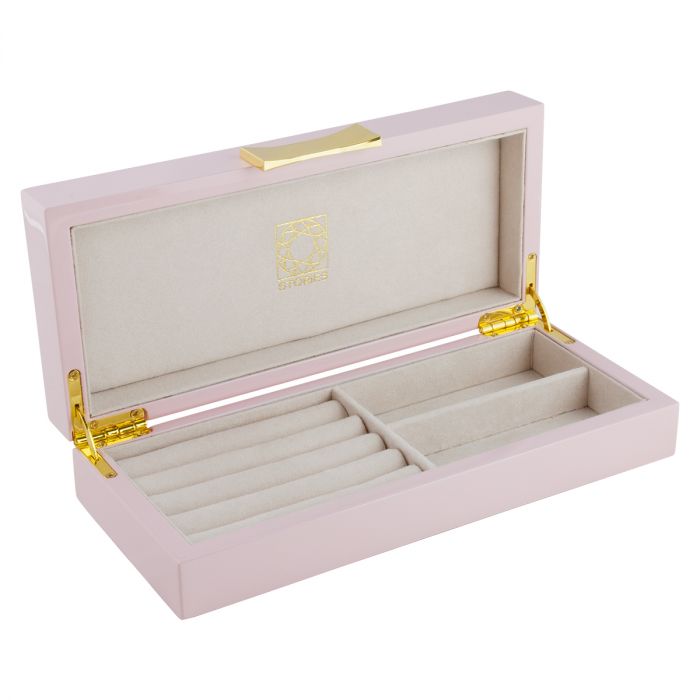 Smykkeskrin aflang i rosa træ med guld magnetlås