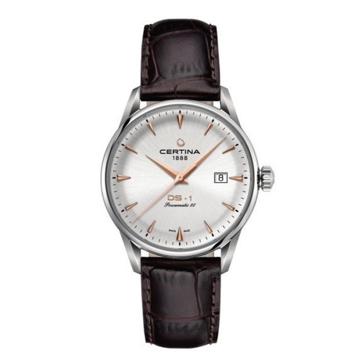 Certina DS-1 Powermatic 80, grå skive med brun læderrem