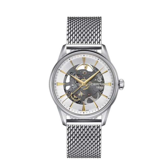 Certina DS 1 Skeleton Powermatic 80 herreur i stål med meshlænke