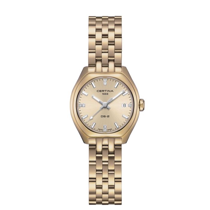 Certina DS-2 dameur i guldfarvet med champagnefarvet skive og diamanter