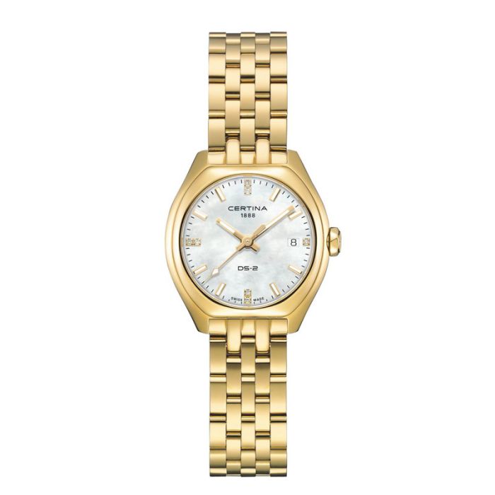 Certina DS-2 dameur i guldfarvet med perlemorsskive og diamanter