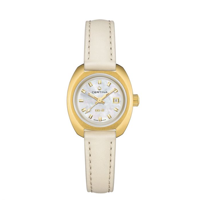 Certina DS 2 Powermatic 80 dameur i guldfarvet stål med læderrem