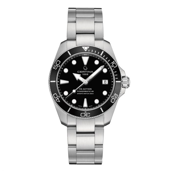 CERTINA DS Action Powermatic 80 herreur i stål med lænke, sort skive