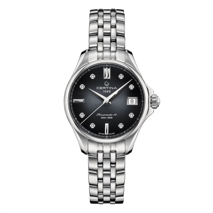 Certina DS Action dameur med diamanter, sort skive og stållænke