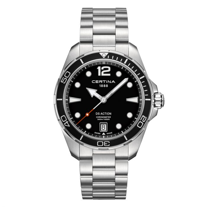 CERTINA DS Action herreur i stål med lænke, sort skive
