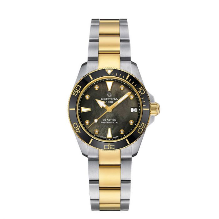 Certina DS Action Lady Powermatic 80 dameur i tofarvet stål med tofarvet lænke