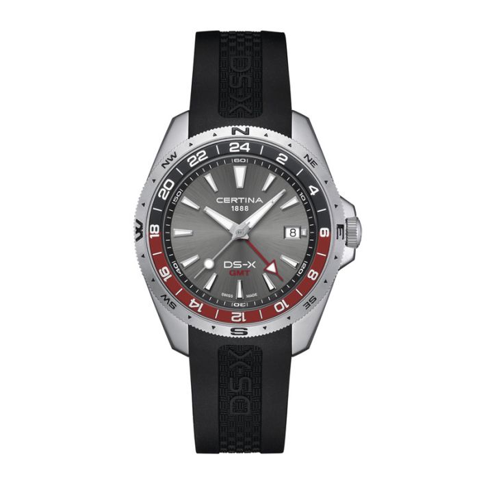 Certina DS-X GMT herreur i stål med sort gummirem og grå skive - Ø41