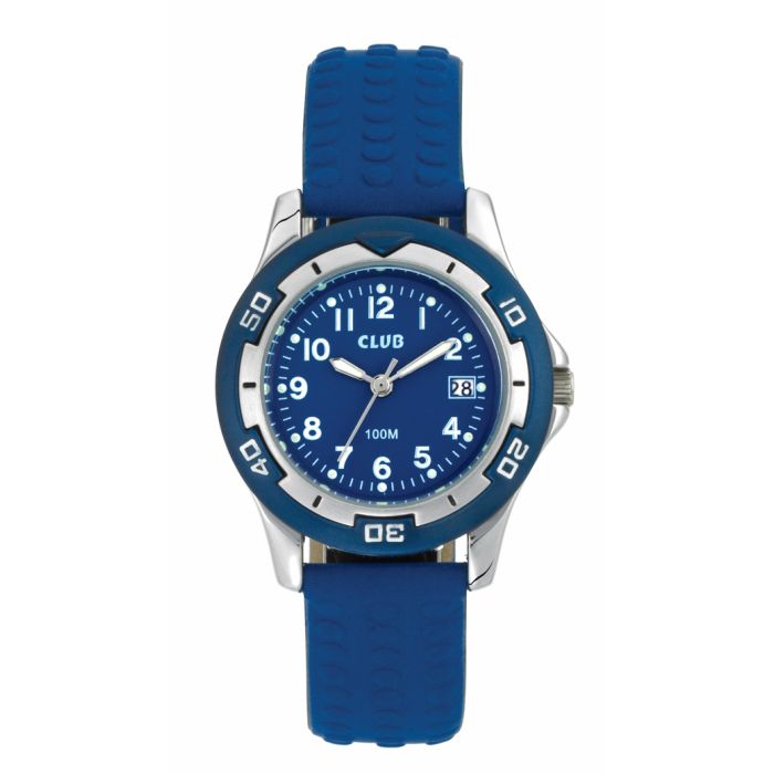 Club børneur, crom med blå gummirem