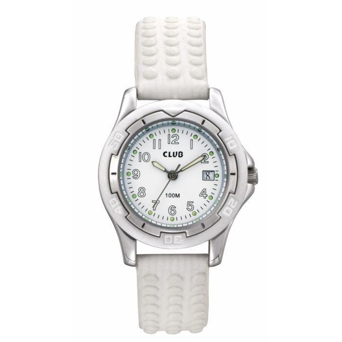 CLUB børneur - Chrom med hvid skive og hvid gummi rem