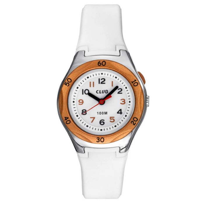 Club børneur med hvid rem, 10 atm