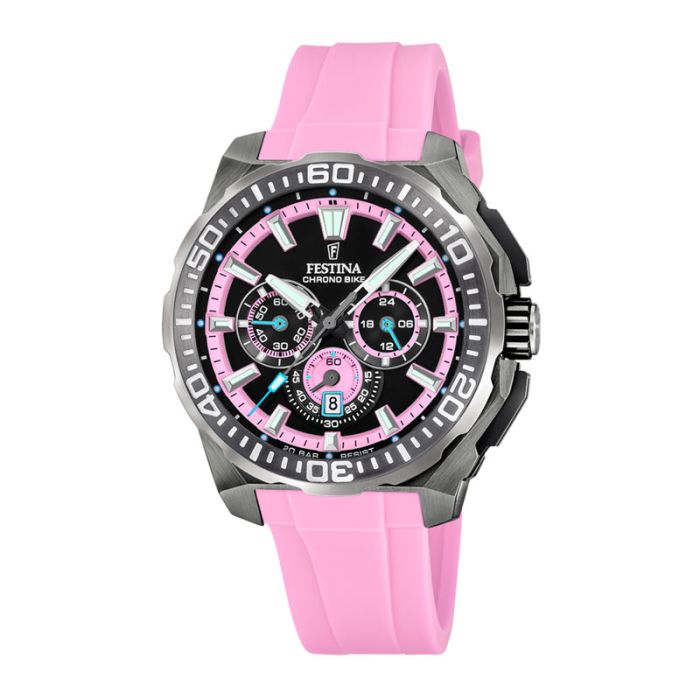 Festina Chrono Bike herreur i sort og lyserød med gummirem - Ø45,5