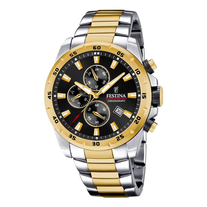 Festina Chrono herreur i tofarvet stål med sort urskive