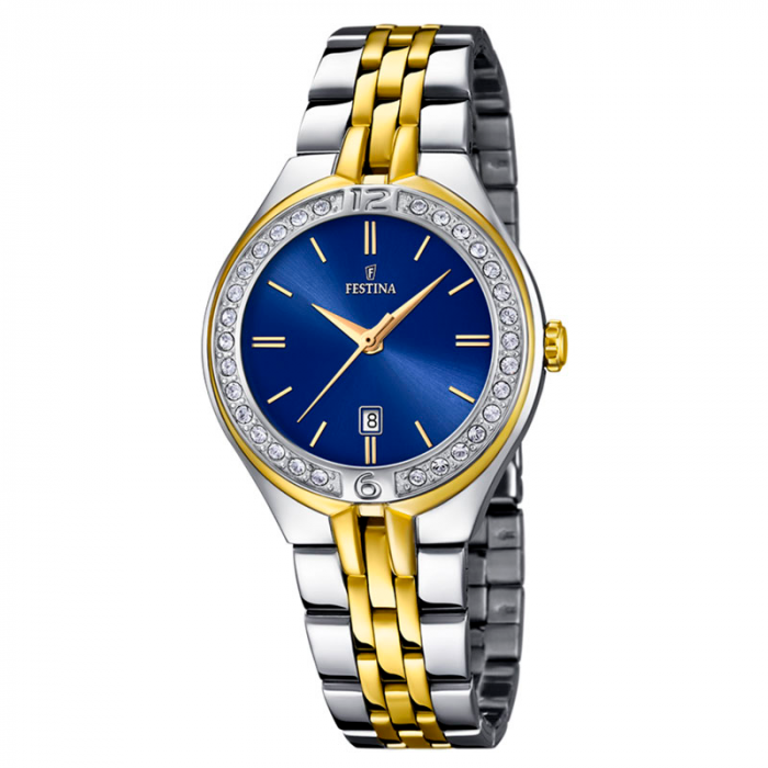 Festina dameur i tofarvet stål med blå urskive