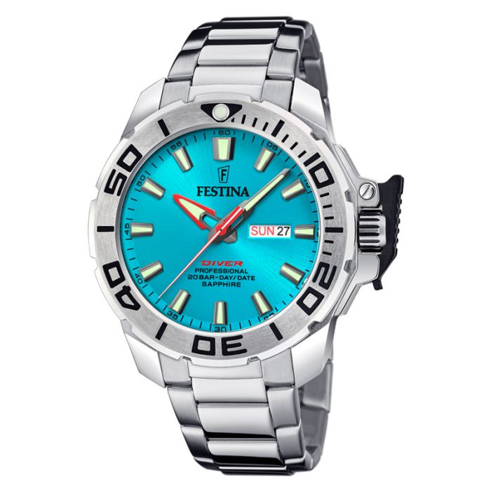 Festina Diver herreur i stål med metallic blå urskive
