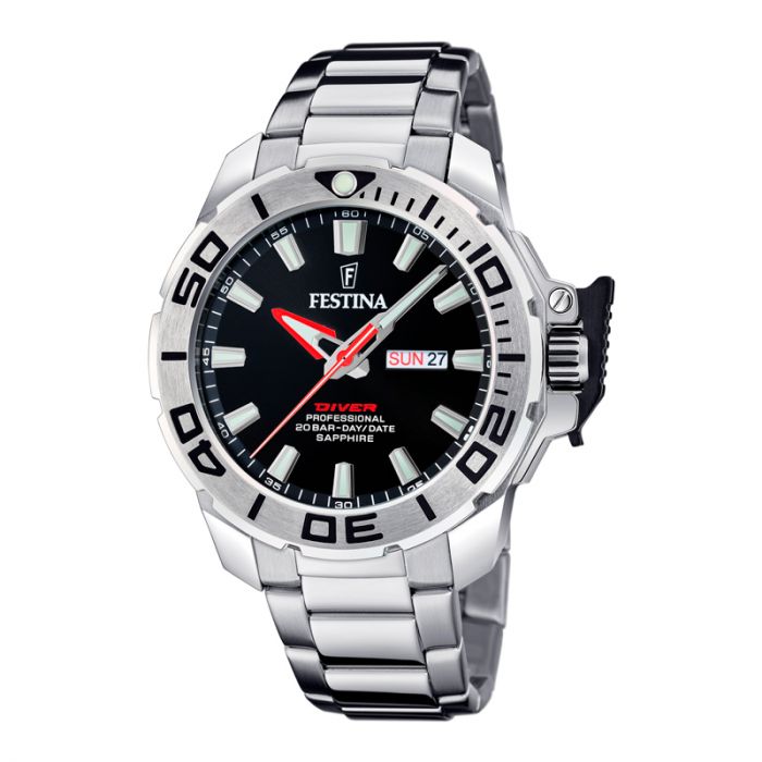 Festina Diver herreur i stål med sort urskive