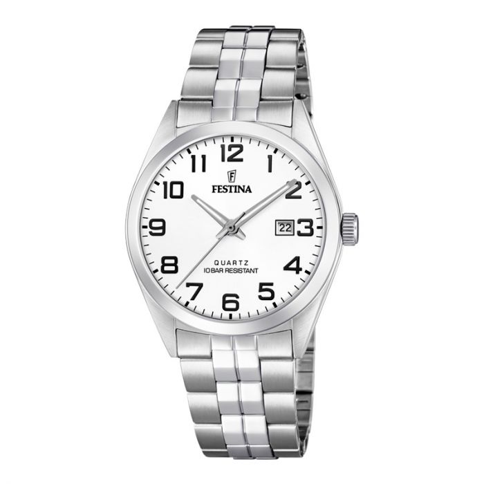 Festina herreur i stål med hvid urskive