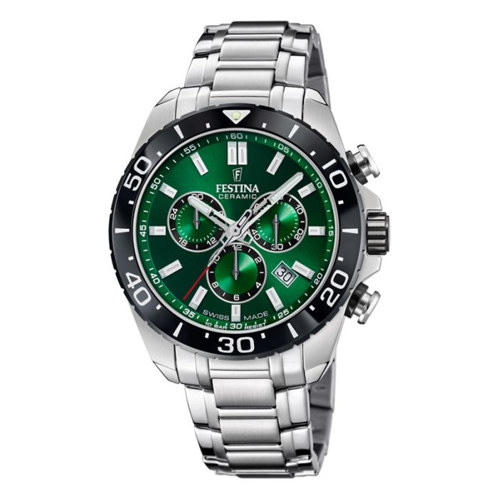 Festina Swiss Made Chrono herreur i stål med grøn urskive