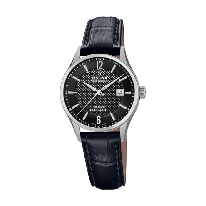 Festina Swiss Made dameur i stål med sort urskive