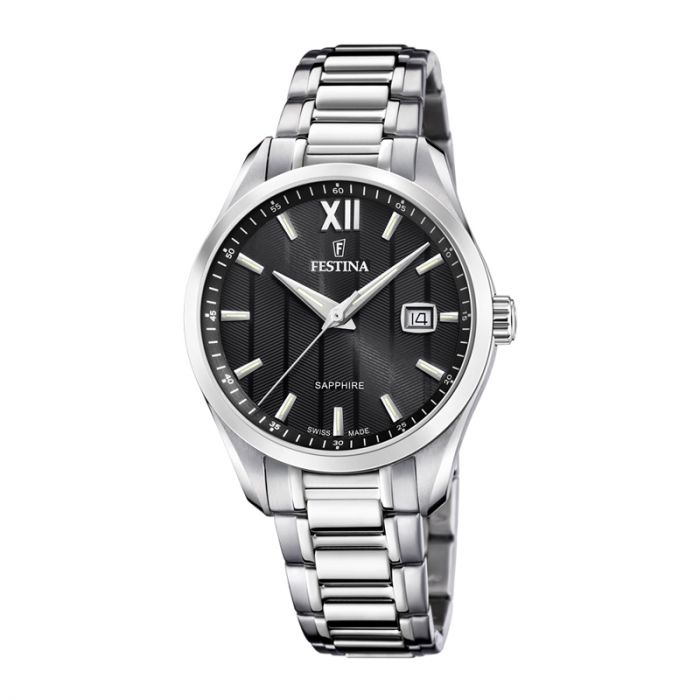 Festina Swiss Made dameur i stål med sort urskive