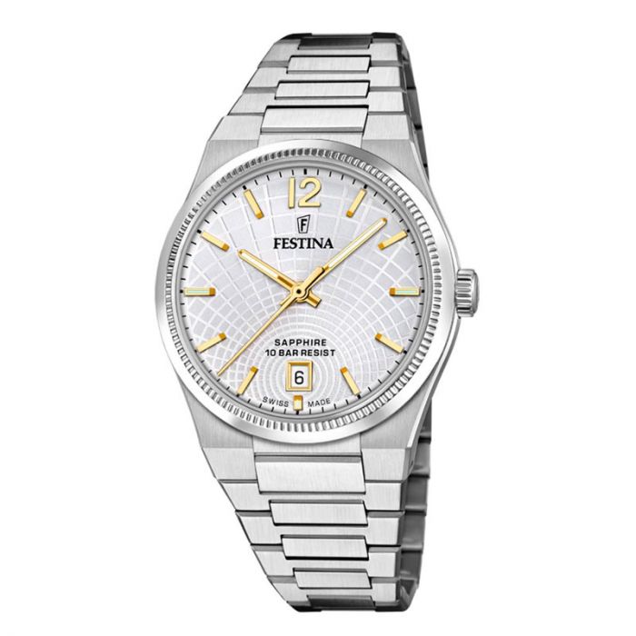 Festina Swiss Made Rivé dameur i stål med sølvfarvet urskive