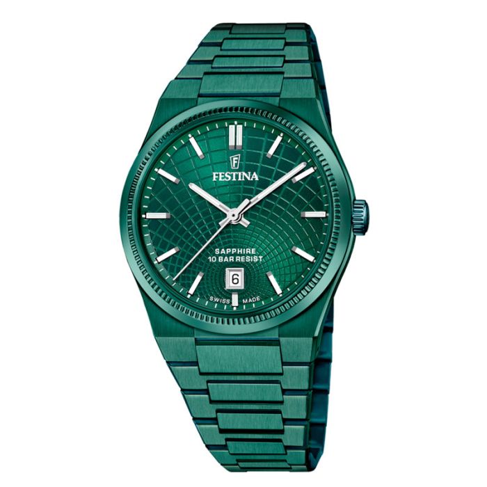 Festina Swiss Made Rivé herreur i grøn med lænke - Ø40