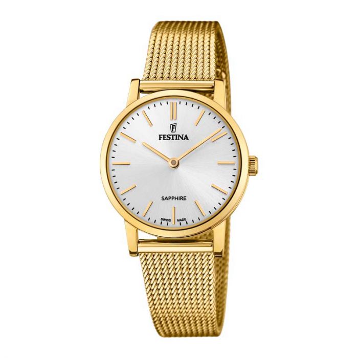 Festina Swiss Made Slim dameur i guldfarvet med grå urskive