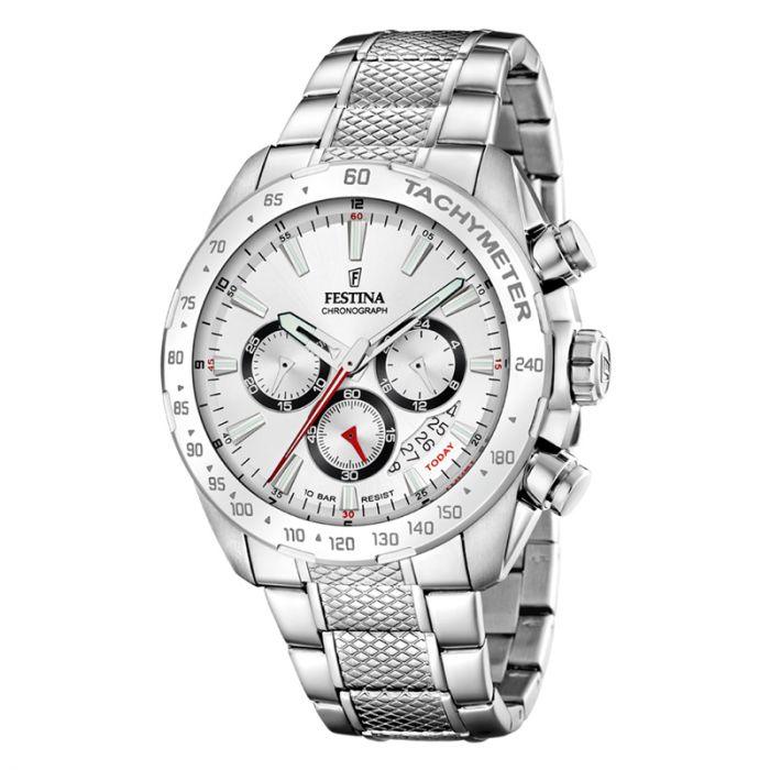 Festina Timeless Chrono herreur i stål med lys grå urskive