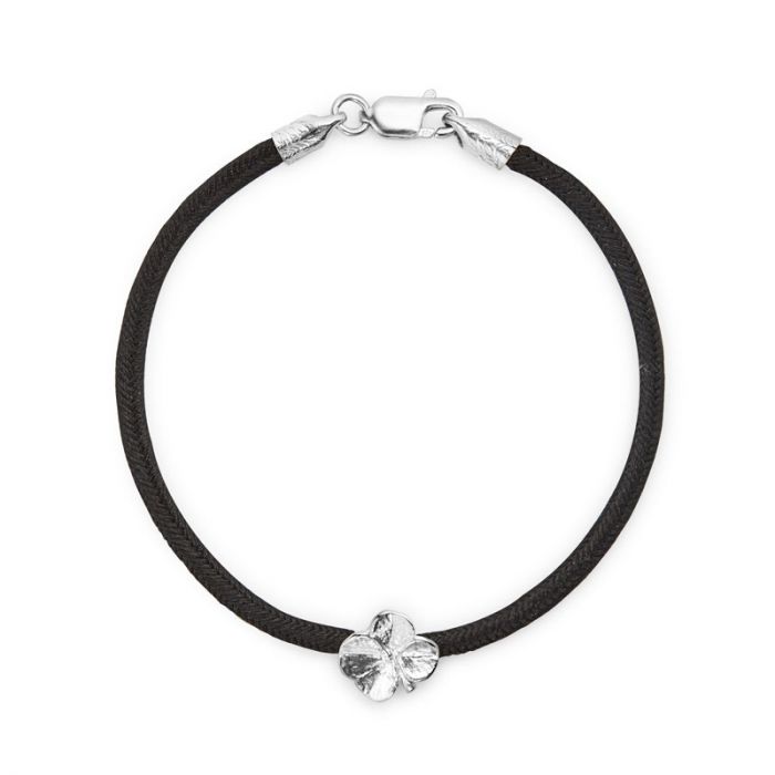 Flora Danica sort silkearmbånd med sølv Firkløver