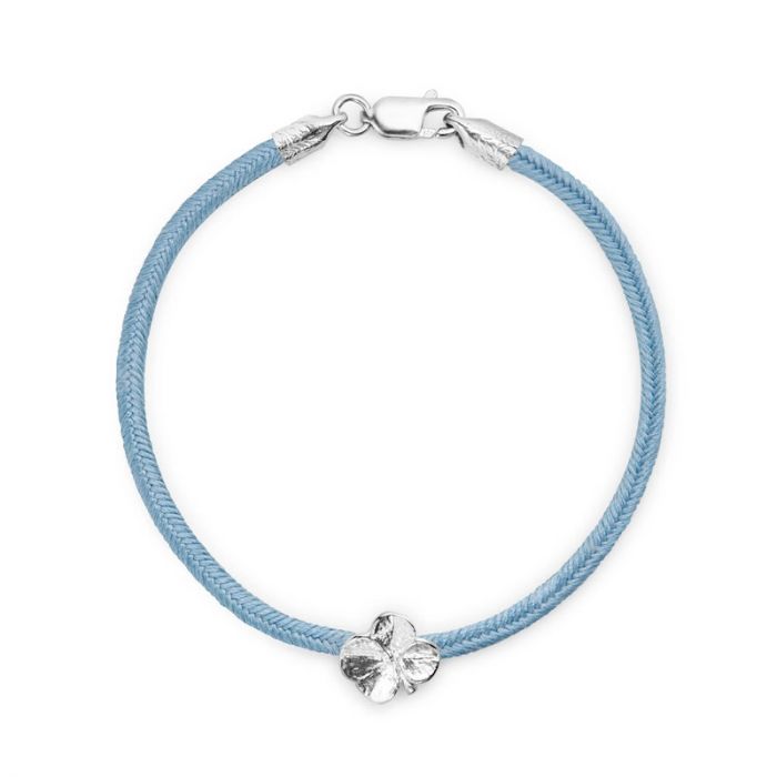 Flora Danica blåt silkearmbånd med sølv Firkløver