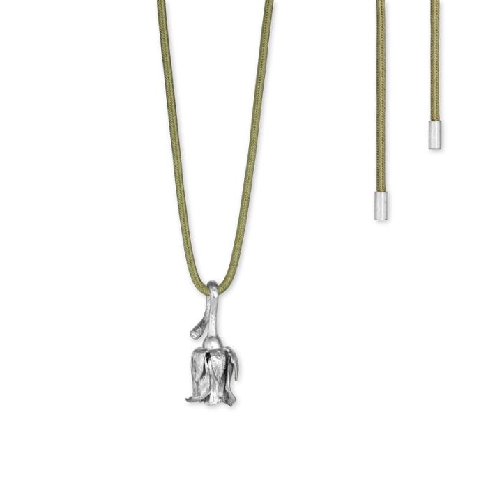 Flora Danica Rose vedhæng i sølv med oliven silkesnor