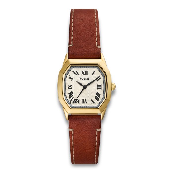 Fossil Harlow kantet dameur i guldarrvet med brun rem