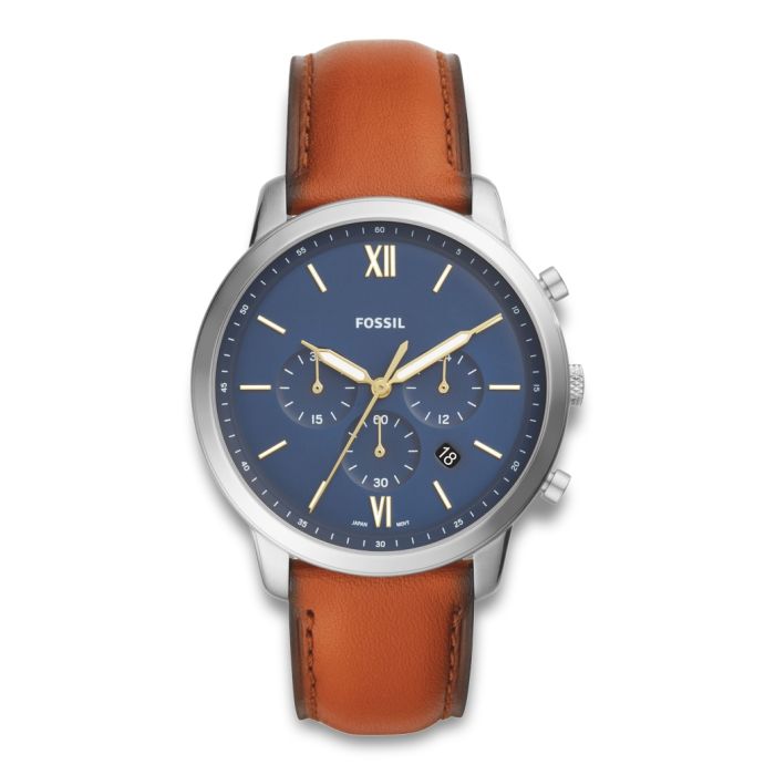 Fossil armbåndsur Neutra Chrono med blå skive og brun læderrem