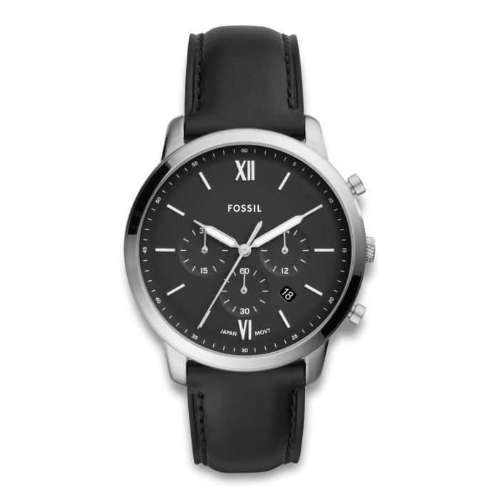 Fossil armbåndsur NEUTRA chrono med sort skive og sort læderrem