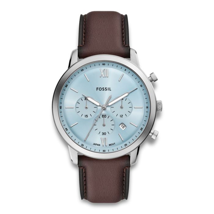Fossil Neutra herreur i stål med blå urskive og brun læderrem