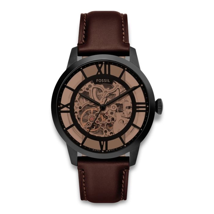 Fossil Townsman herre mekanisk ur sort stål med brun læderrem