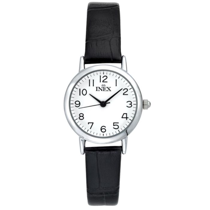 INEX dameur - chrom med sort rem, hvid skive Ø 25