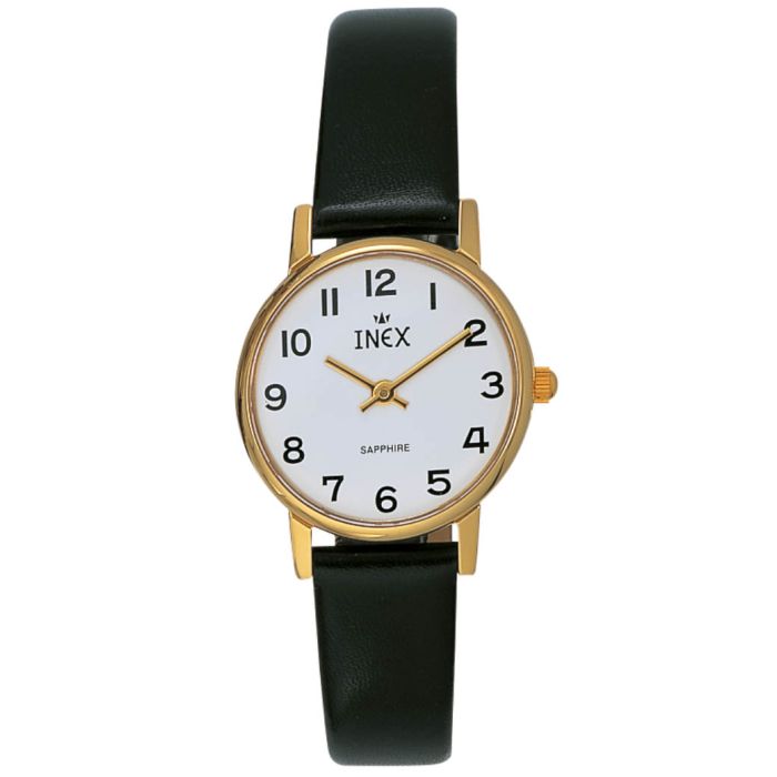 INEX dameur - double med sort rem, hvid skive Ø 25