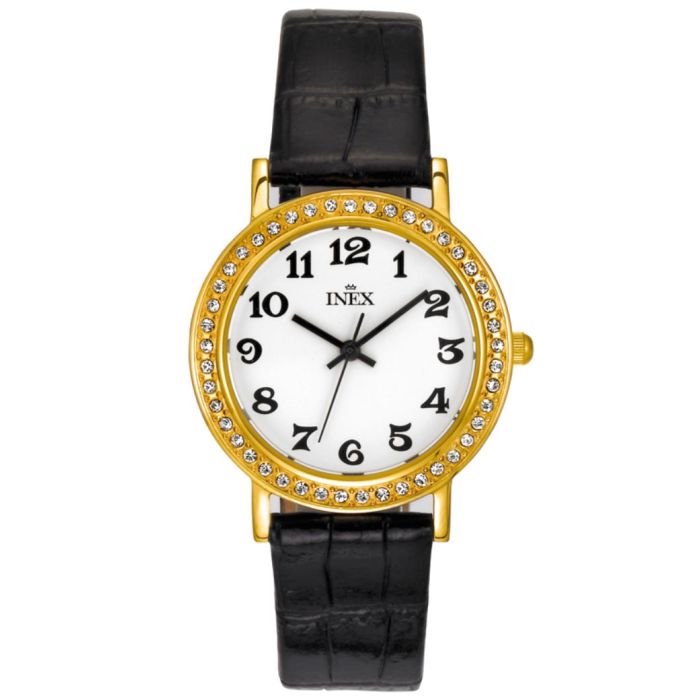 INEX krystal dameur- double med læderrem, Ø 32