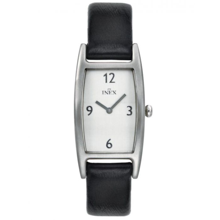 INEX dameur - stål med sort læderrem og hvid skive