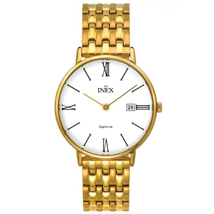 INEX Herreur i double med lænke, hvid urskive med dato, Ø 38