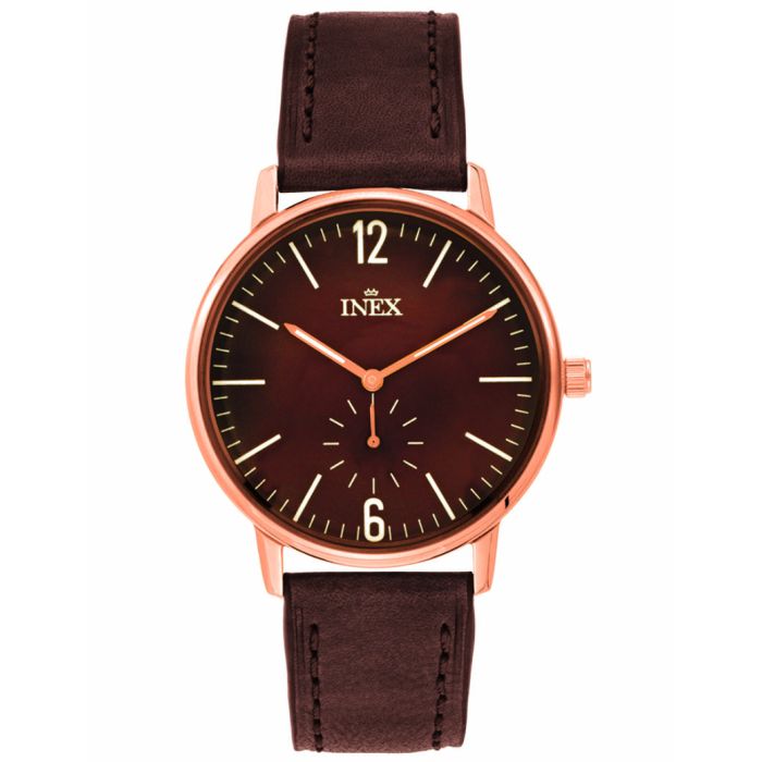 INEX armbåndsur - rosaguld med brun rem, brun skive, Ø 40