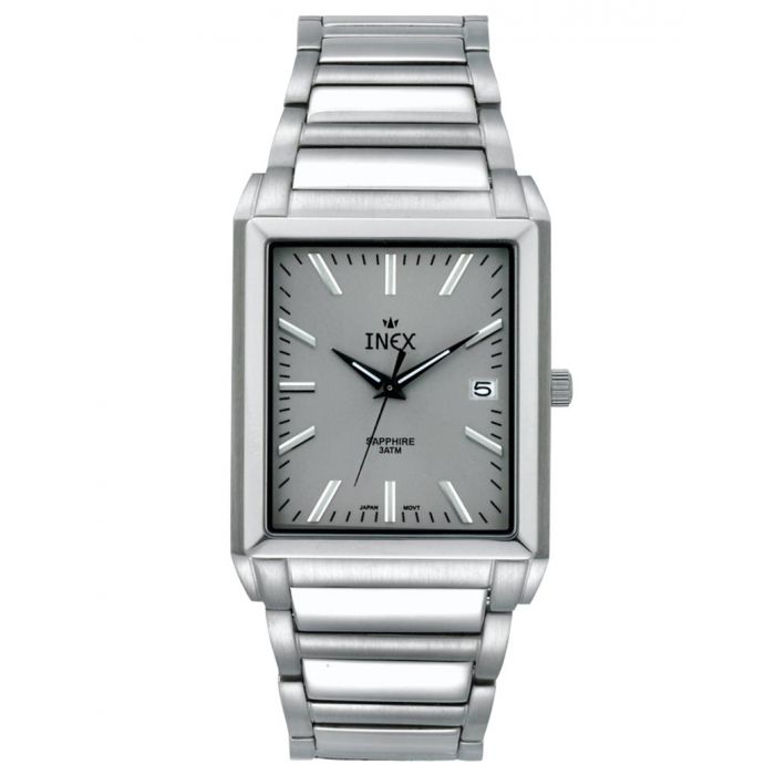 INEX armbåndsur i stål med lænke, sølv skive