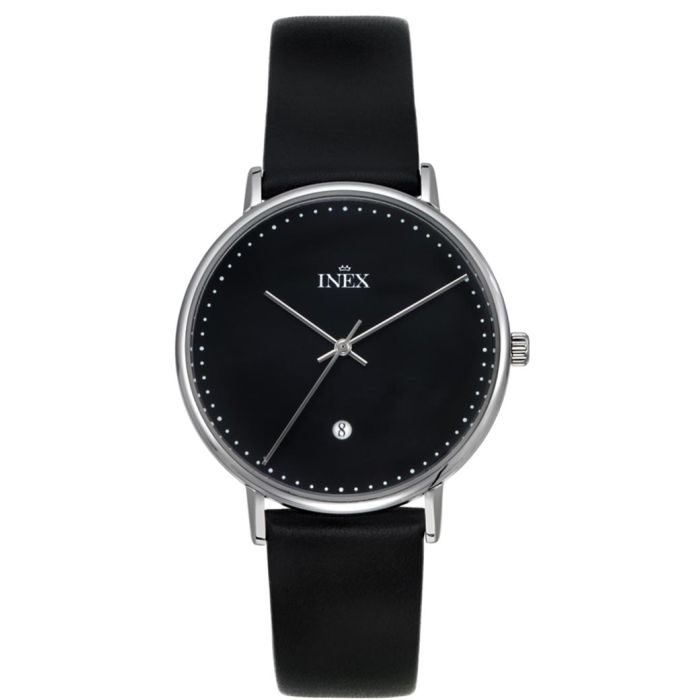 INEX armbåndsur - stål med sort rem, sort skive, Ø 38