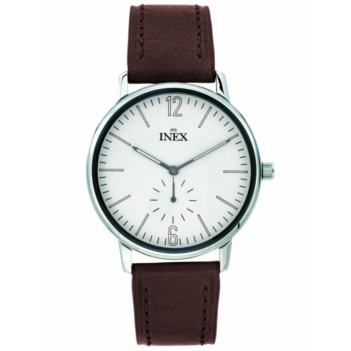 INEX armbåndsur - stål med brun rem, hvid skive, Ø 40