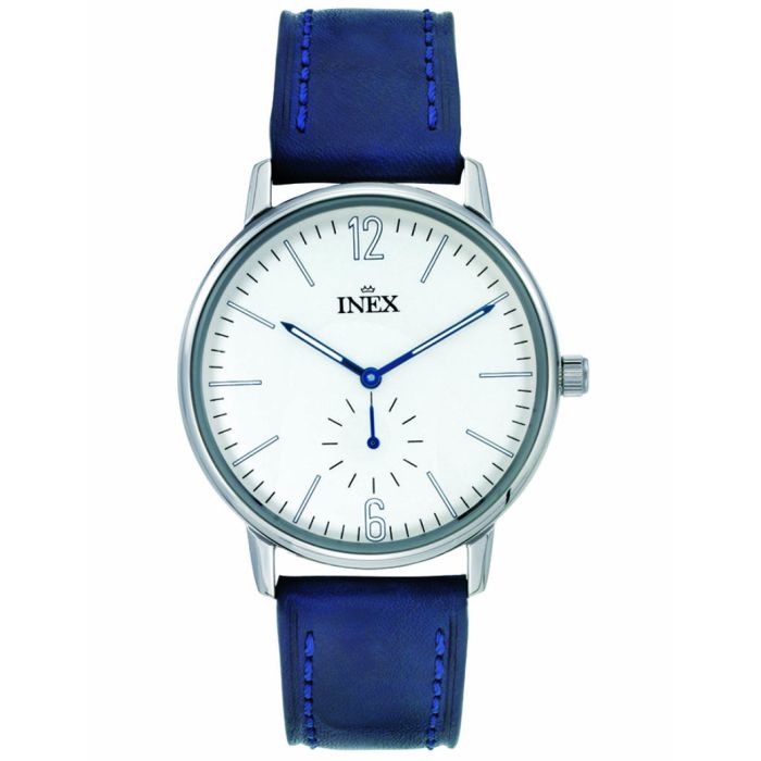 INEX armbåndsur - stål med blå rem, hvid skive, Ø 40