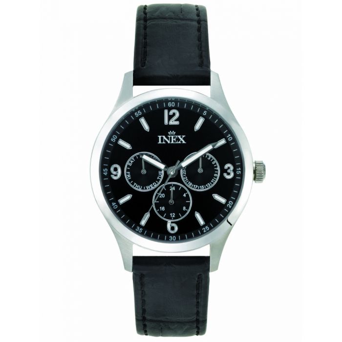 Inex herreur i stål med dato og sort rem