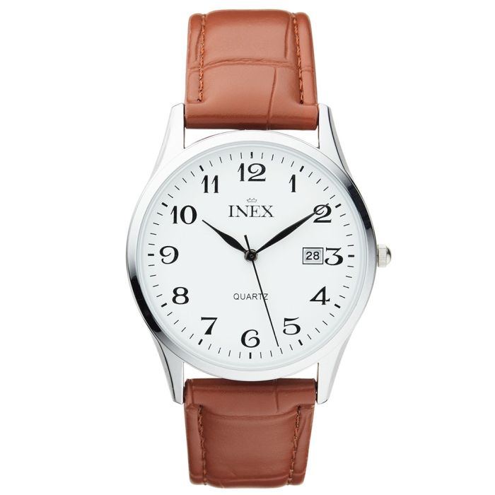 INEX armbåndsur i stål med arabertal - Brun læderrem