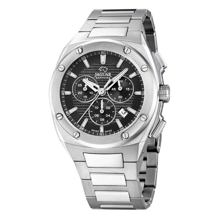 Jaguar chronograph ur i stål med lænke, sort skive Ø45