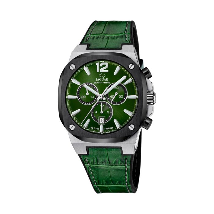 Jaguar Rondcarre Chrono herreur i stål og grøn læderrem - Ø43